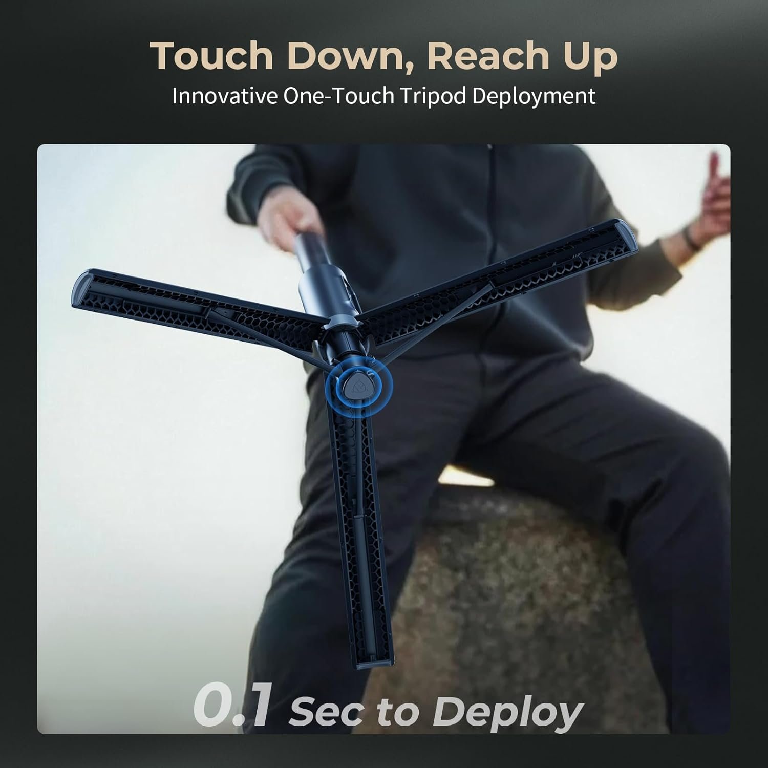 Instant Setup Phone Tripod: One-touch bottom tripod deployment ensures 2-second setup with exceptional stability on any terrain, perfect for outdoor vloggers and content creators needing fast equipment prep