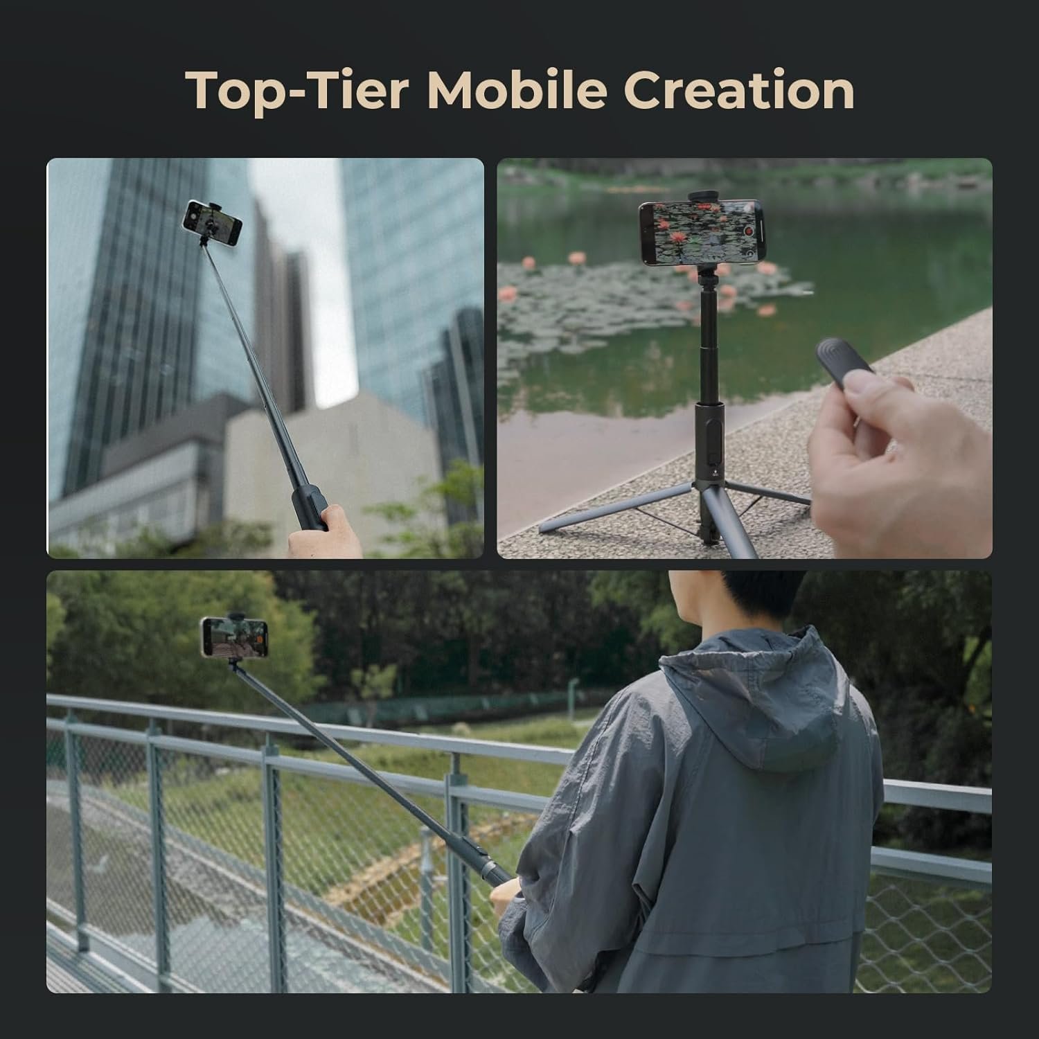 Detachable Wireless Remote: Featuring a magnetic detachable remote control for simplified operation. Compatible with iOS and for Android, it enables quick pairing, allowing you to take photos from a distance without touching your smartphone within a 10m range, enabling solo creators to capture timelapses, cooking close-ups, or hiking shots hands-free
