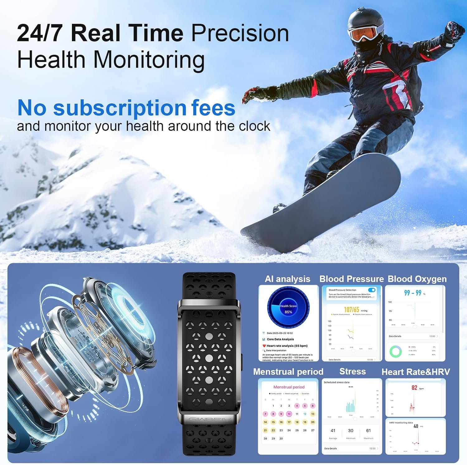 【ALL Night SLeep Tracker】 Experience round-the-clock sleep tracking with our sleep monitor. The smart band keeps track of your nighttime sleep and daytime naps, recording your wake time, sleep duration, sleep stages (light, deep, REM). Depending on your sleep circumstances, you can modify your rest period