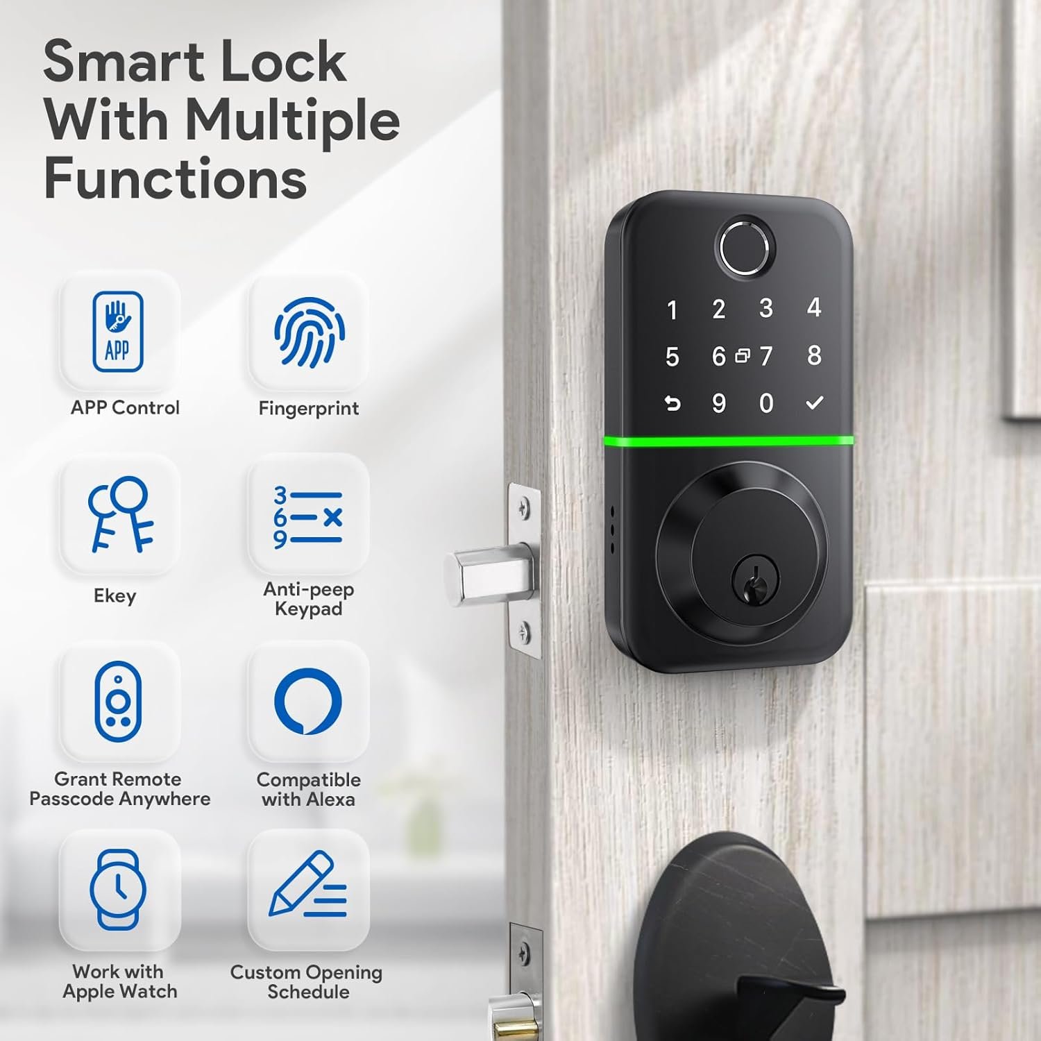 Smart Door Lock Deadbolt with Keypad: Keyless Entry Door Lock – Fingerprint Lock for Front Door – Electronic Lock with Bluetooth and APP Control