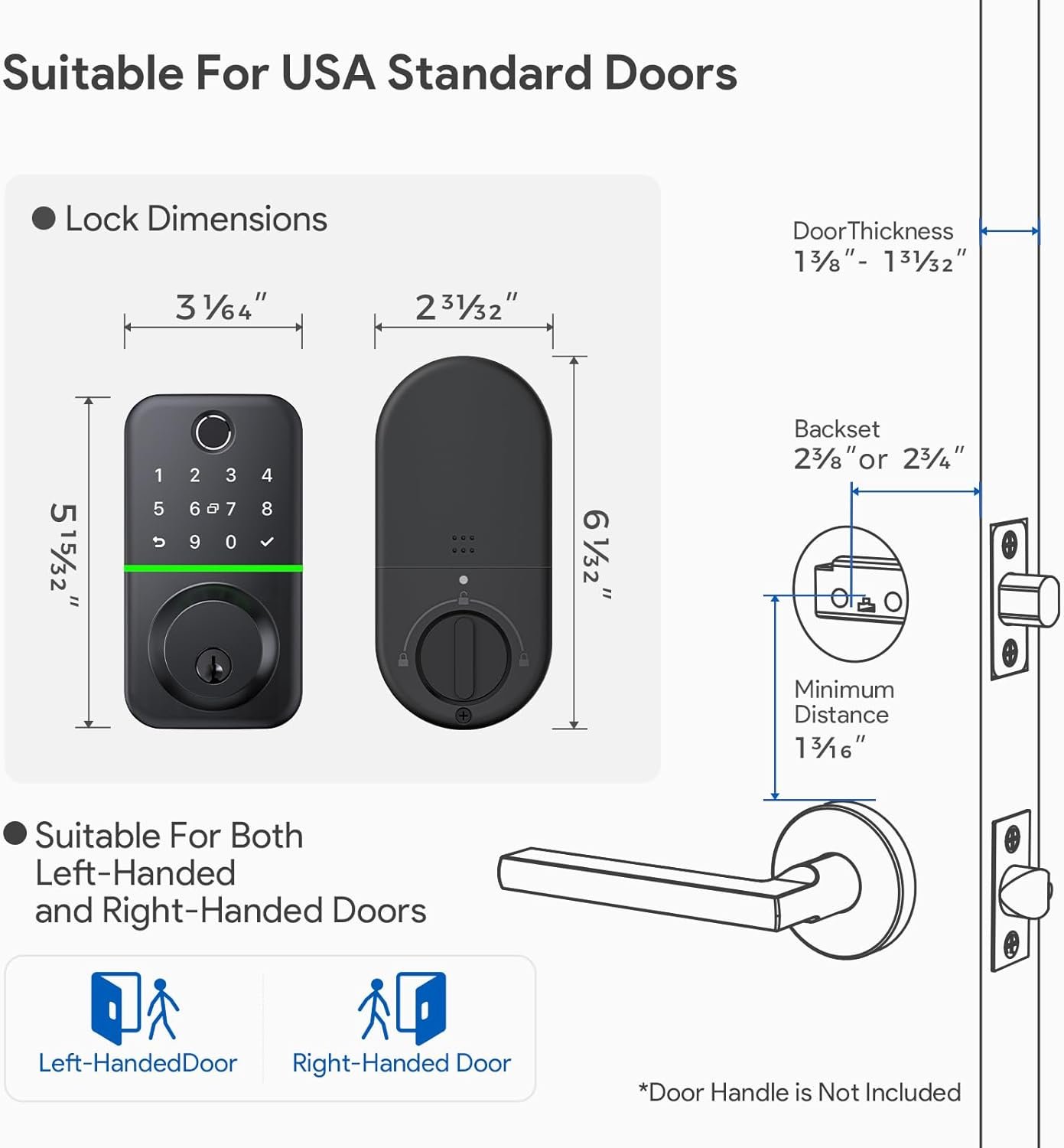 【Easy Installation】You can finish the installation in around 5 minutes with just a screwdriver, without the need for additional drilling and wiring, as the lock is compatible with American standard doors.