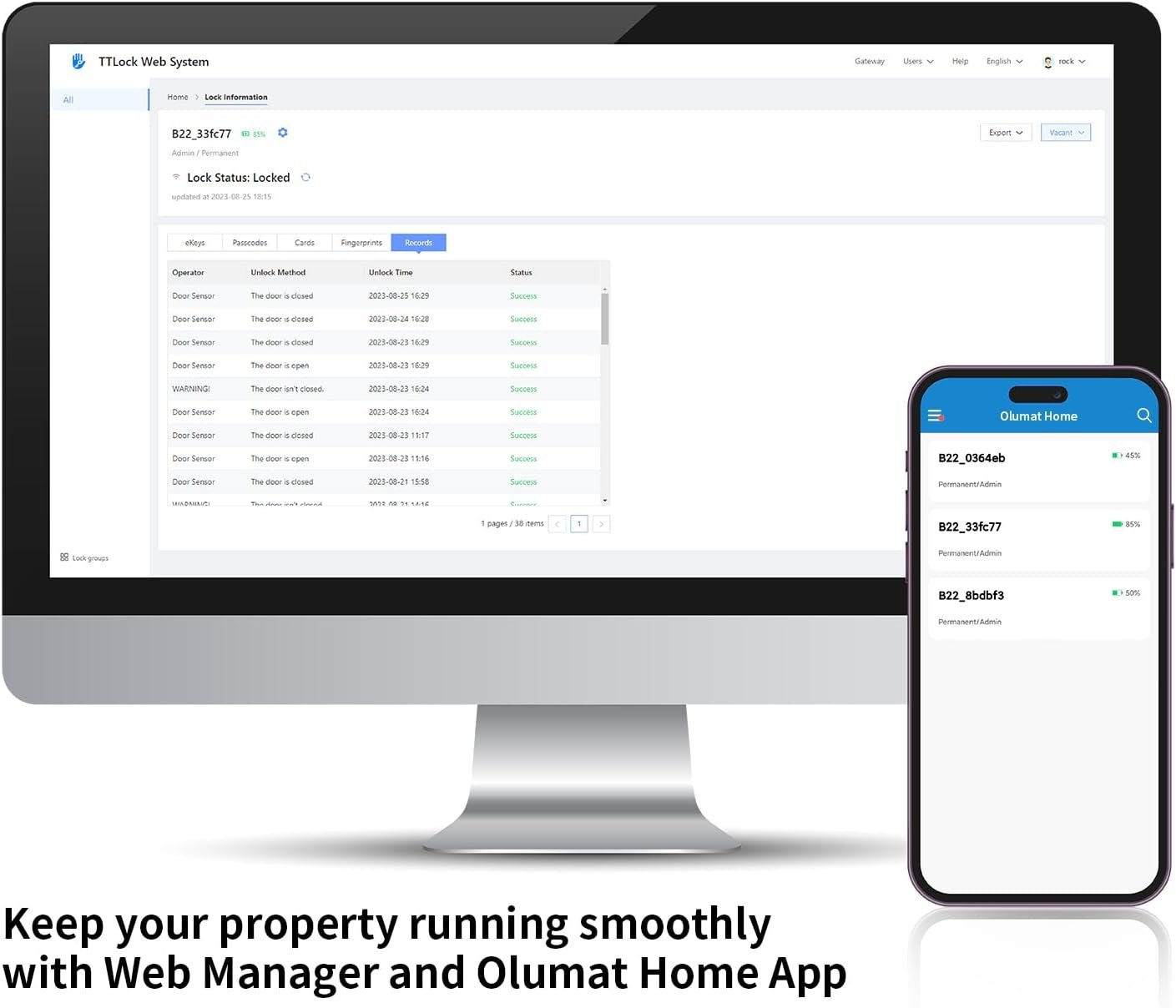 Remote Control: If paired with Olumat WiFi Gateway (Optional Add-on, Sold Separately), you can lock/unlock your smart door lock anytime anywhere, set up passcodes remotely and check real-time access logs, and voice control with Alexa
