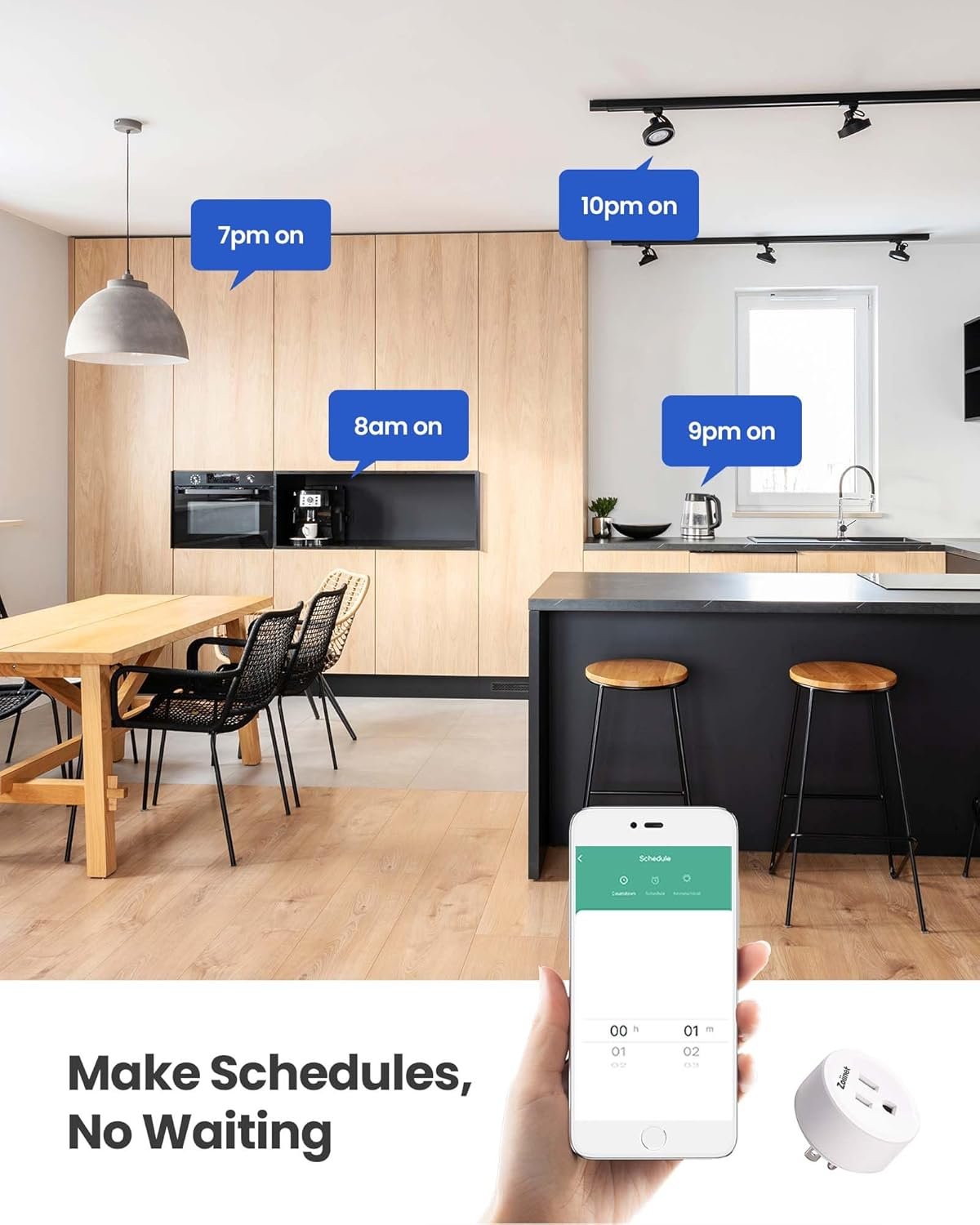 TIMER SCHEDULE: Use a timer or countdown schedule to set your wifi plug to automatically turn on/off your household appliances; Your home appliances operate in an orderly and regular manner according to your living habits