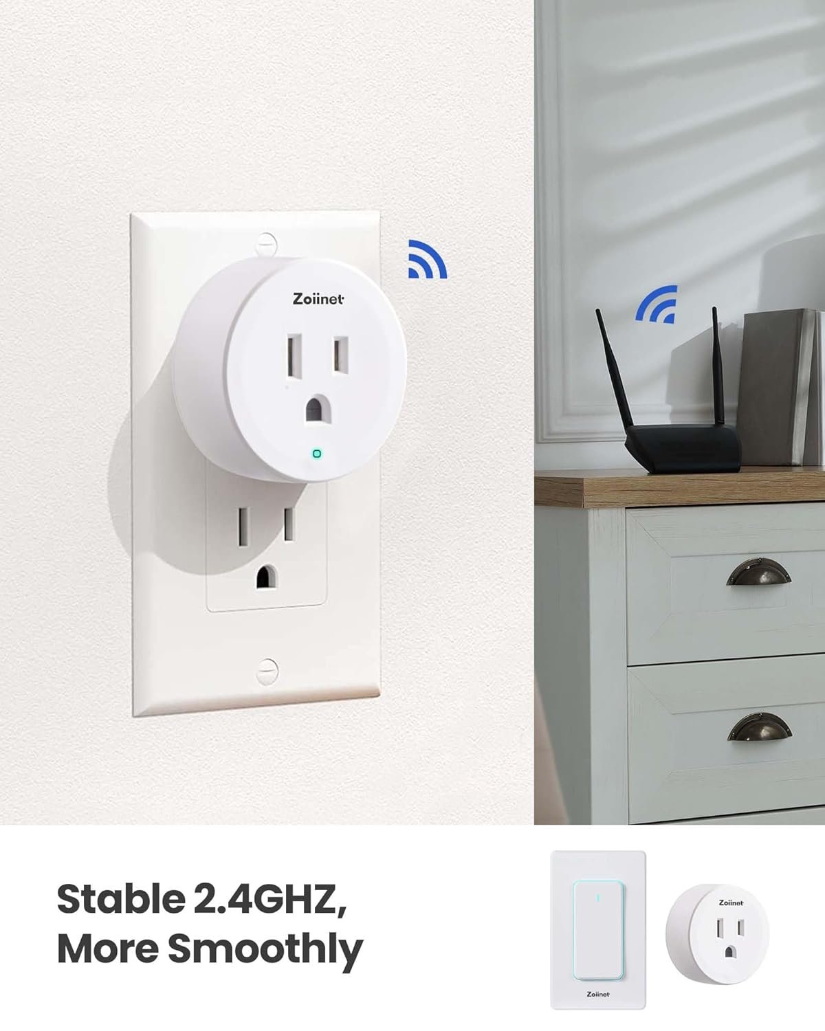 VOICE CONTROL: With 2.4 GHz only, voice control WiFi smart plug can be controlled from anywhere, anytime; Enable you to have a truly hands-free experience; Zoiinet Smart outlet is compatible with Alexa, Google Assistance, Smart Life, IFTTT & Tuya APP