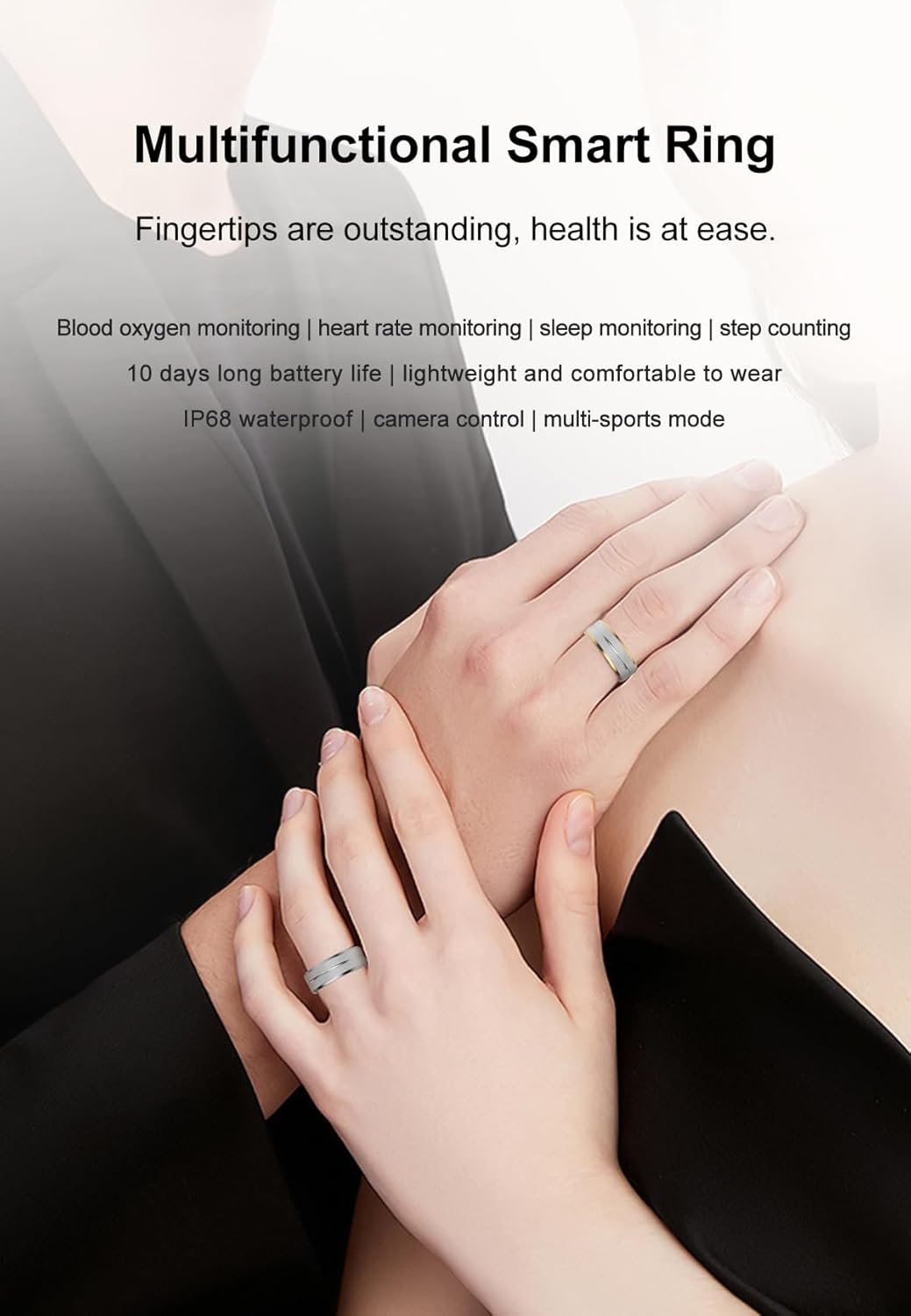 Snap Instantly with a Wave of Your Hand: The innovative smart rings design allows you to easily take photos anytime, anywhere. With remote camera control, become a professional photographer and effortlessly capture beautiful moments, stylish smart ring elevating your selfie game; Smart ring for mobile app control and calls and messages.