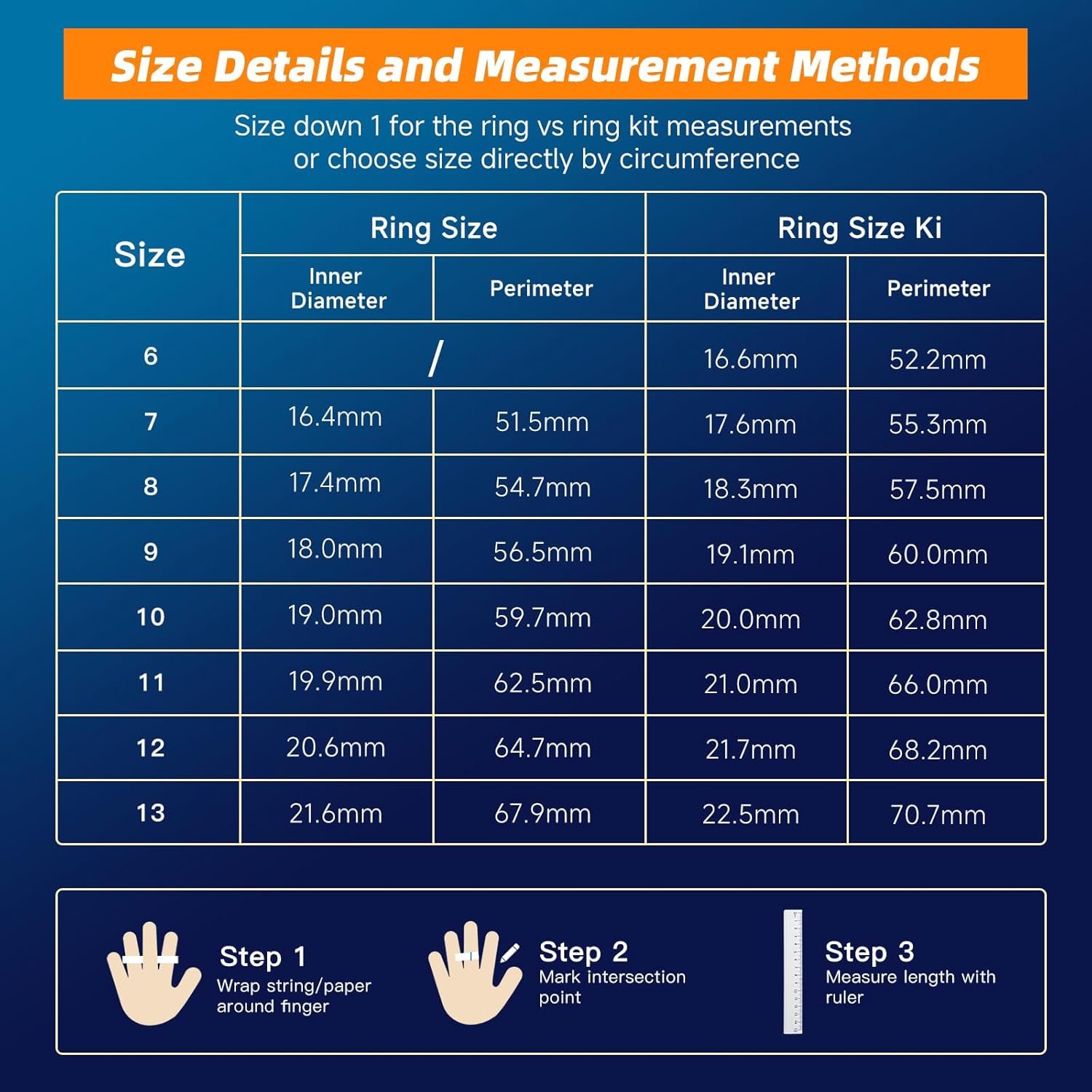 【Warm Tips】Please determine the appropriate size before purchasing a heart monitor ring. You can buy a ring sizer to determine the size, or use a long paper strip or a small string to wrap around the finger to be worn, and determine the size by measuring the intersection of the marks