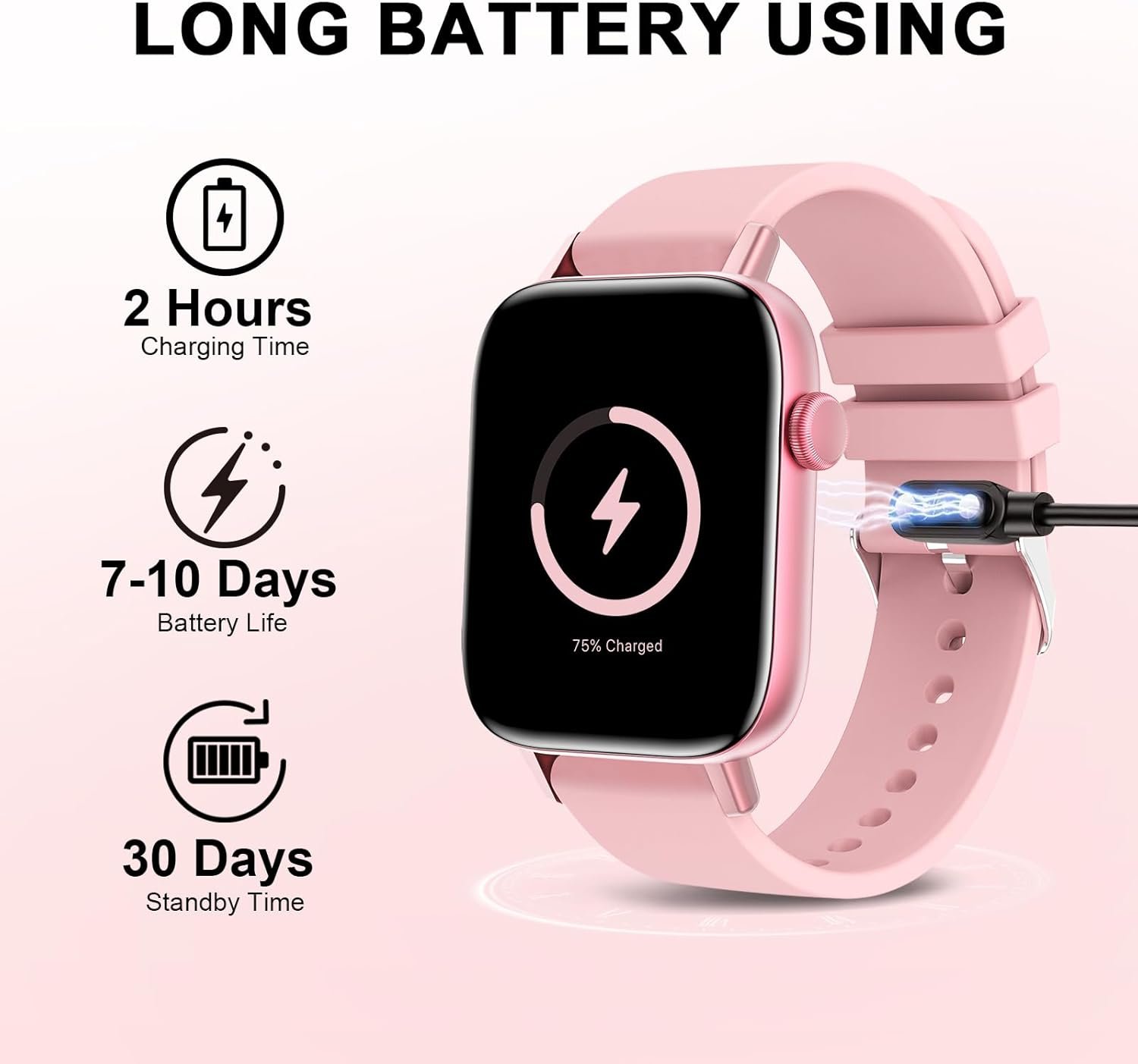IP67 Waterproof & Broad Compatibility–The waterproof smartwatch meets the IP67 waterproof standard. You can wear it while washing your hands, running in the rain, Not suitable for swimming, diving and bathing. (Do not let the watch soak in seawater and hot water, such as hot springs) It can support most Android and iOS phones(Android 5+, iOS 9+). It can be used for 5-7 days when fully charged, and the standby time is over 30 days with a 290 mAh large-capacity battery.