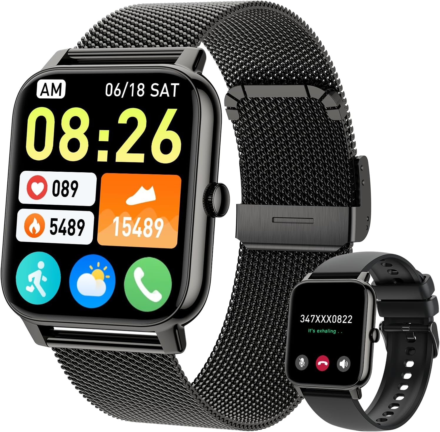 Large face watches for Men Women : Smart watches for men women adopts a larger screen design, and come with 2 watch bands of different colors. The bright frame and strap perfectly enhance the elegance of the overall outfit.Smart watch for android phones contains many dials readily available to choose from along.You can also DIY watch faces with your own photos.Smart watch for iphone compatible can be any photo,such as your family,pet,et