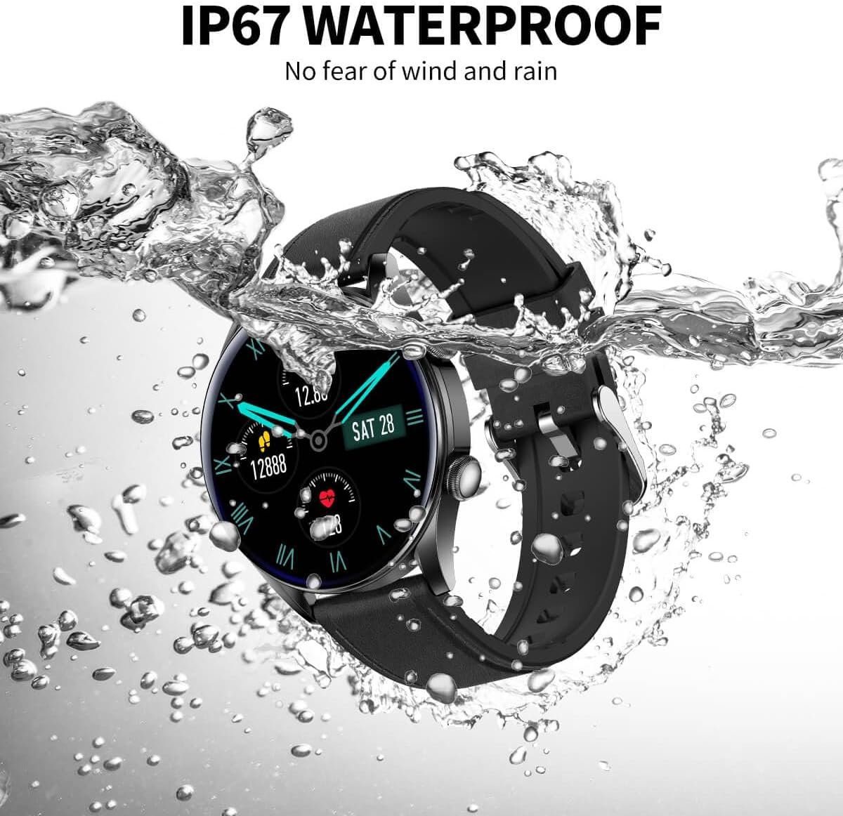 【Stable Battery Life and IP67 Waterproof】The smartwatch has IP67-level waterproof and dustproof performance, which can cope with rainy commuting, sweating during exercise and daily activities. The 30-day ultra-long standby mode and 3-6 days of battery life under typical use can meet your continuous wearing needs. At the same time, the watch is compatible with Android 4.4, IOS 9.0 and above, whether it is daily commuting, sports training or outdoor exploration, it can adapt to your wearing rhythm.