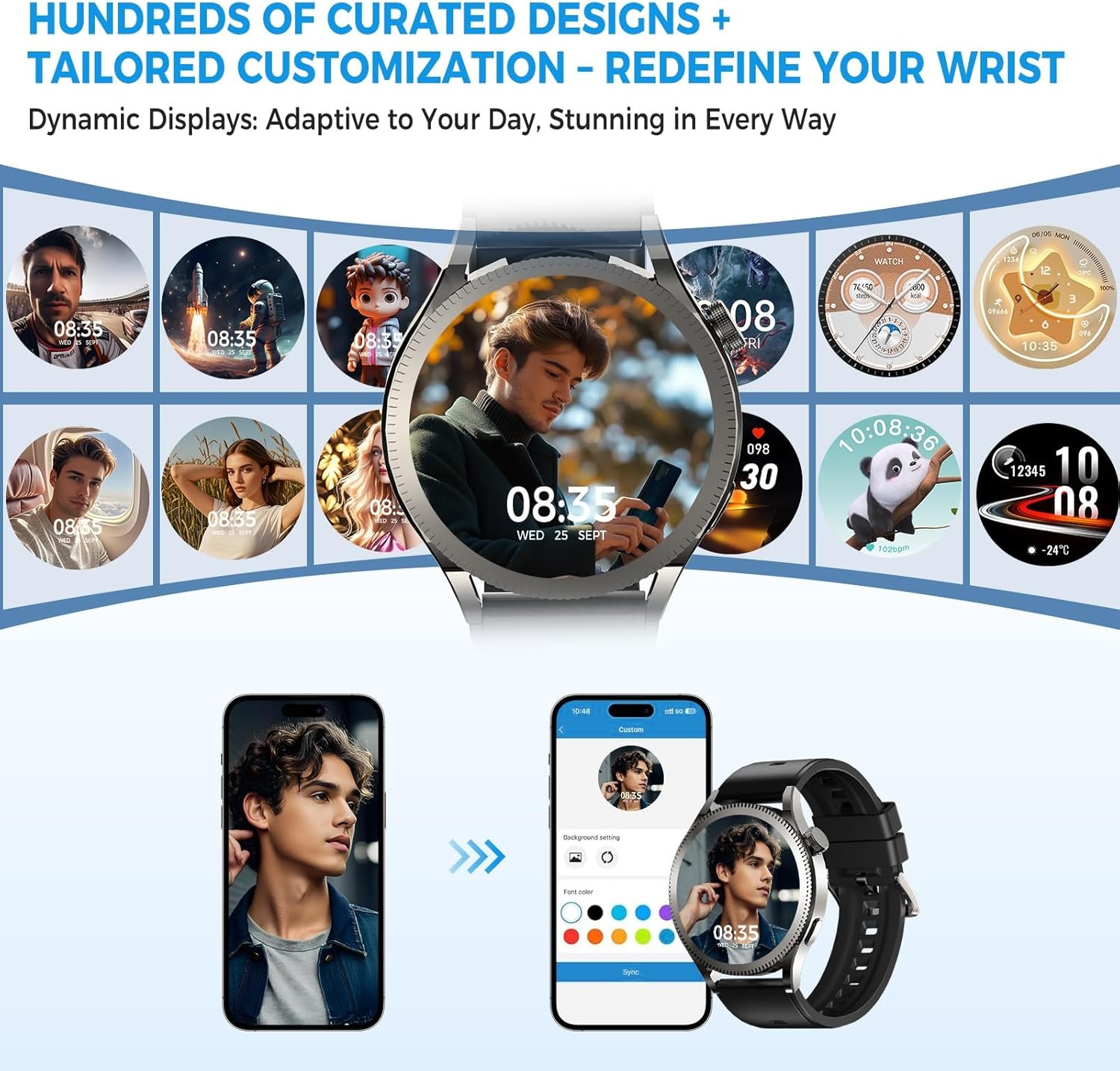【Hands-Free Calling & Voice Assistant】Make/receive calls directly from your wrist with built-in HD speaker & mic. Control music, ask questions, or set reminders via voice commands – perfect for workouts, driving, or multitasking