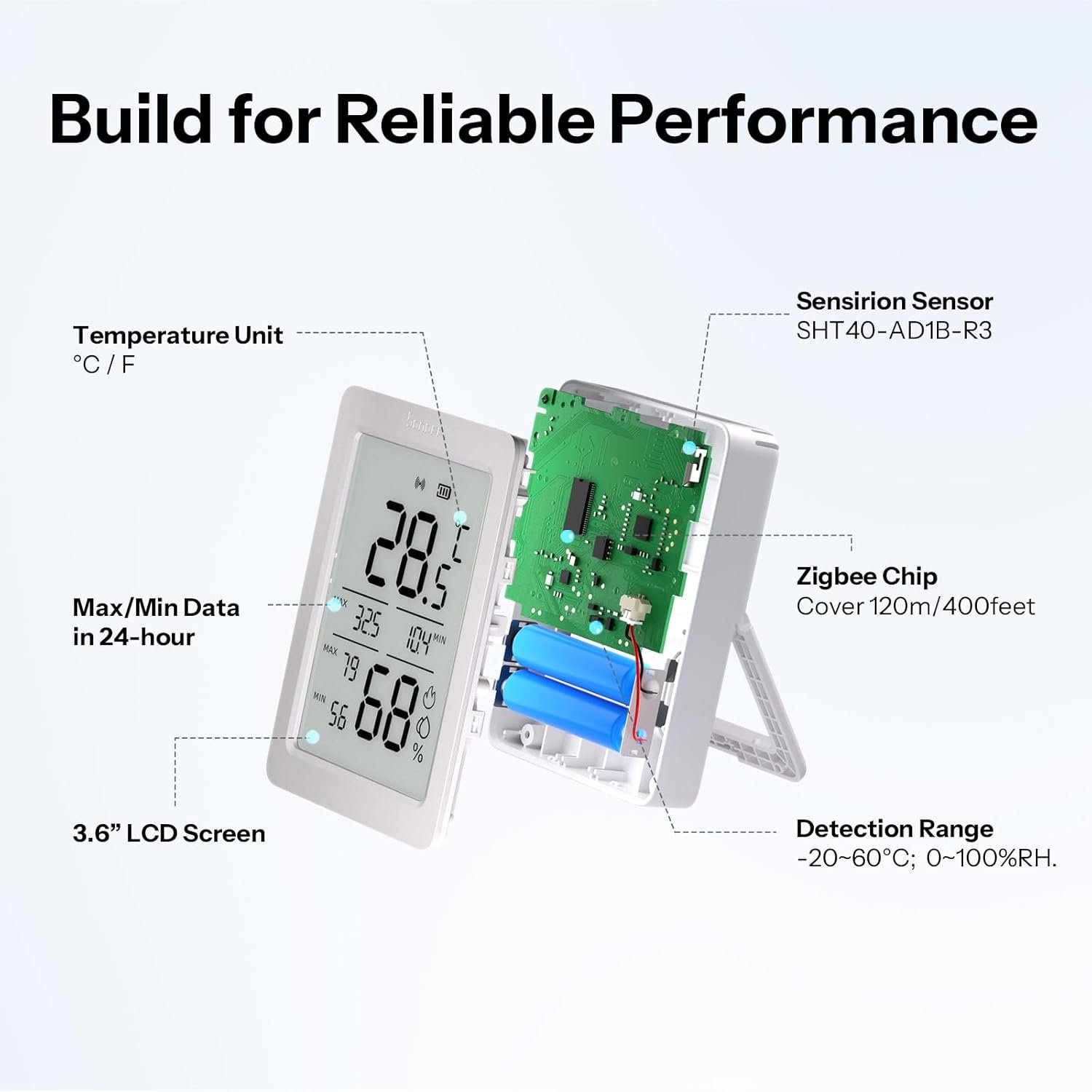 [3.6” Large LCD Display with Daily Highs and Lows] The large LCD stays crisp and readable from several meters away, suitable for the elderly, providing rich information grasped at a glance: Real-time data(updated every 5s), Max/Min data in 24-hour and comfort level signals.