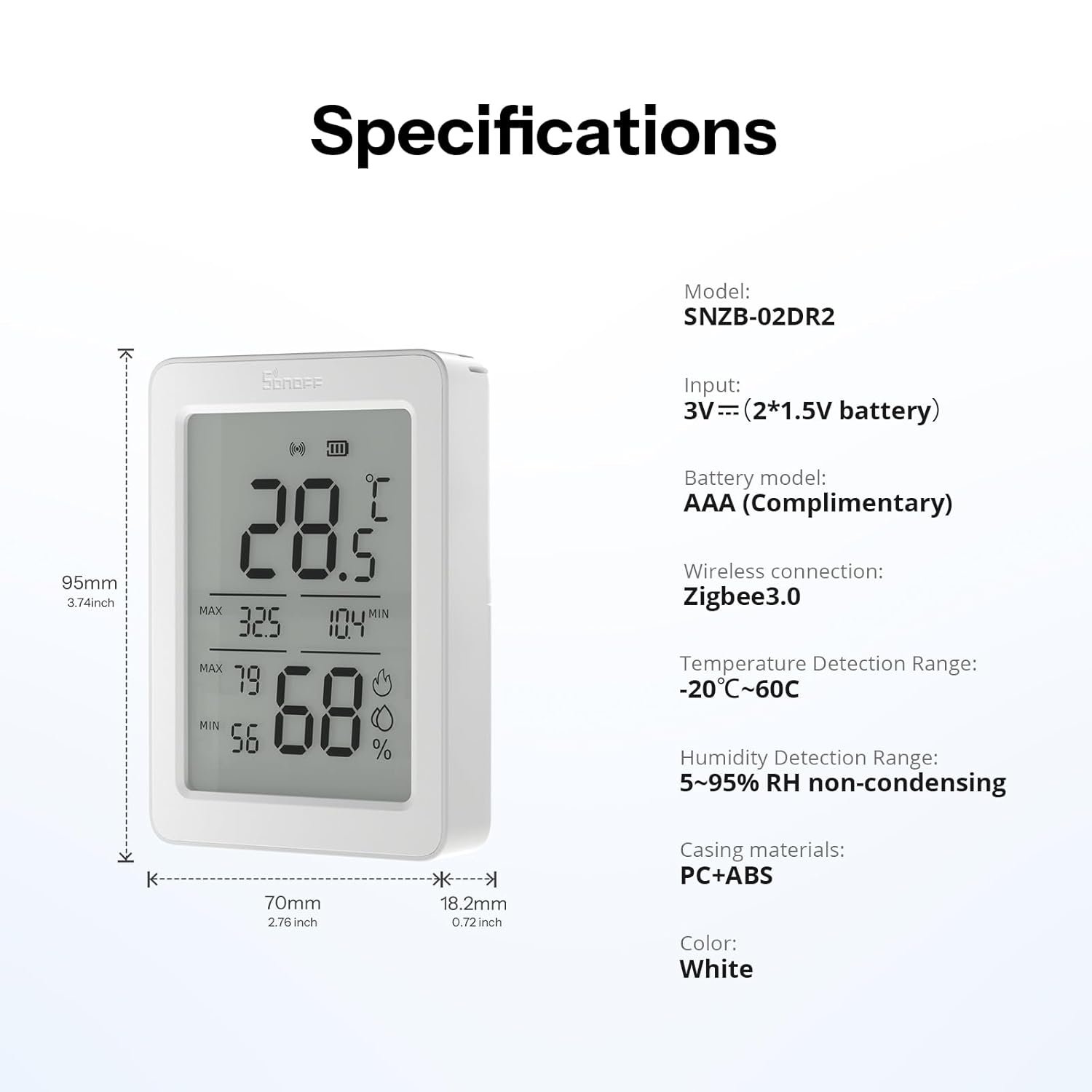 SONOFF AirGuard TH, Indoor Smart Zigbee Temperature and Humidity Sensor, 3.6” LCD Display, App Monitoring with Charts, Notification Alerts, Data Export, Remote Data Display