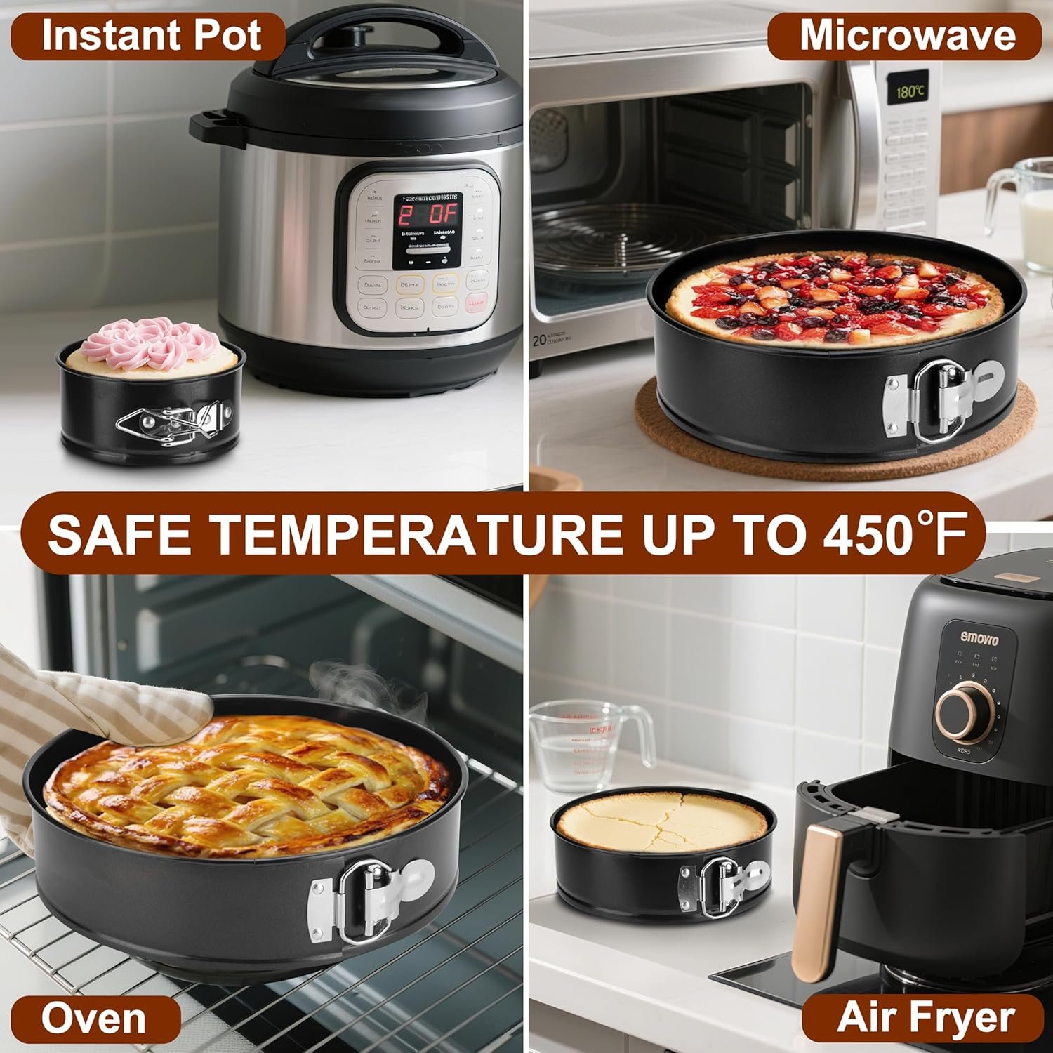 OVEN-SAFE UP TO 450℉: The Cheesecake pan is oven safe up to 450℉, retain consistent heating, great for making cheesecake, fruit tart, lasagna, pie, tiramisu, quiche, mousse, bread pudding and more. Food heated evenly and come out perfectly.