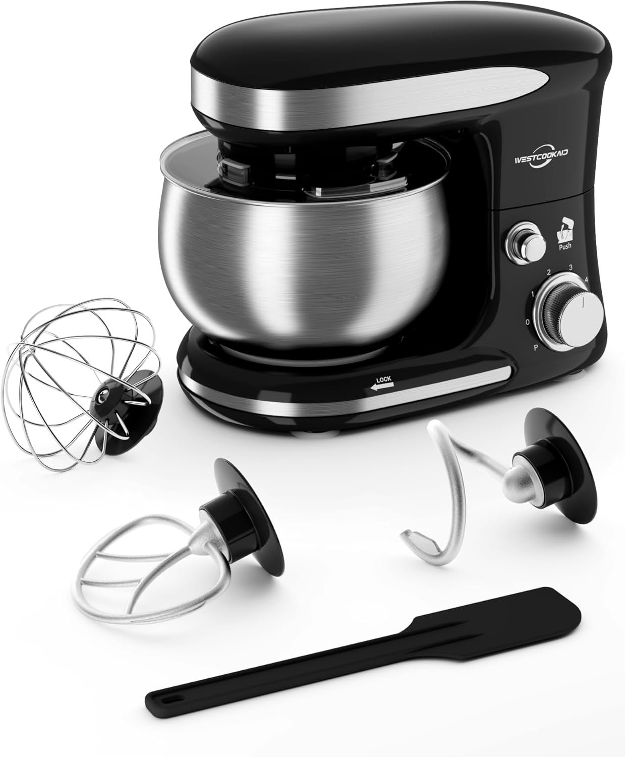 🍕【6+PULSE SPEED & THOROUGH MIXING】Smooth knob controls 6 speeds for daily mixing task, from cakes to bread dough. WESTCOOKAID kitchen mixer pulse function offers bursts of power to chop ingredients without overmixing, while planetary mixing guides the attachment around the bowl’s contour to achieve complete, even mixing