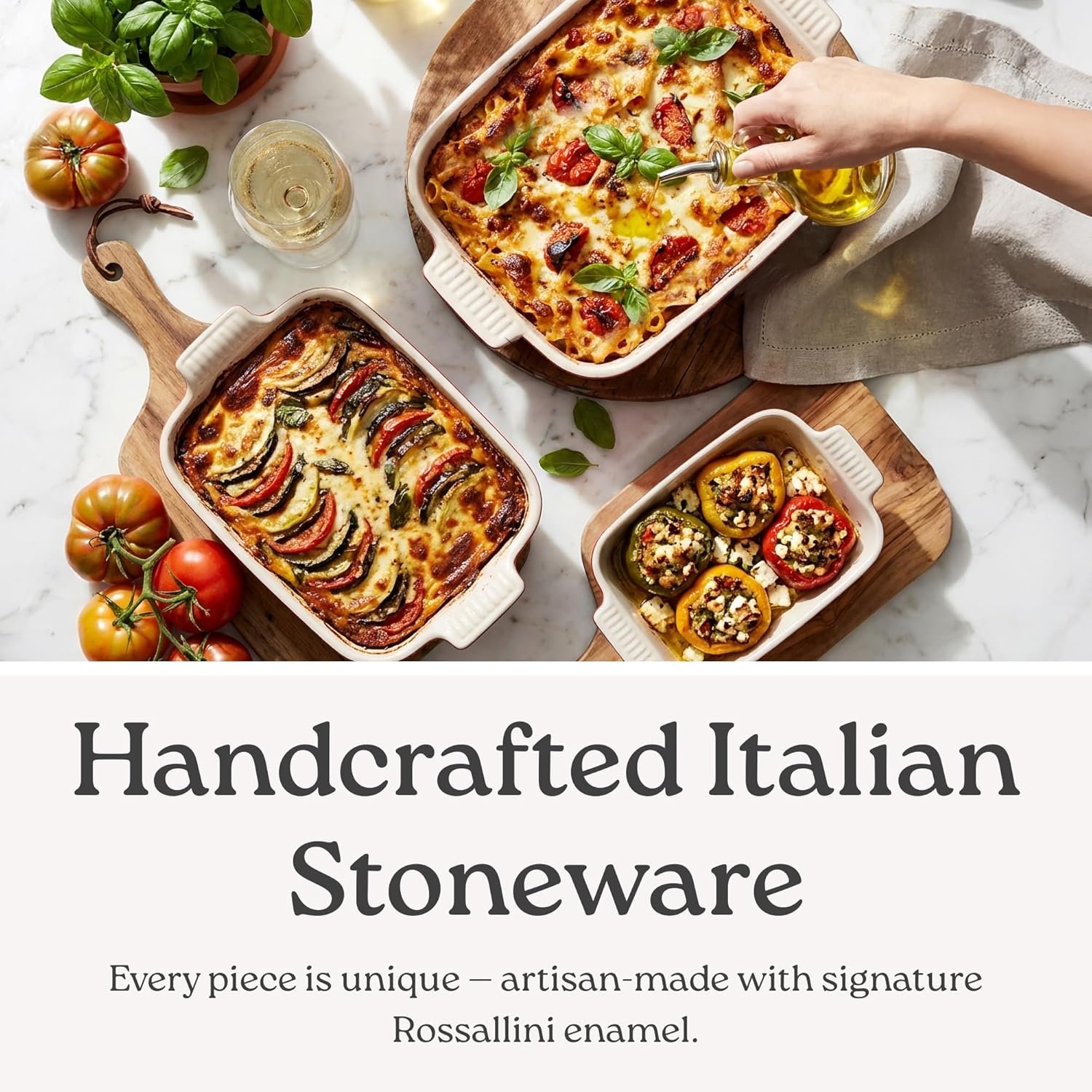 TRULY UNIQUE HANDMADE ART – Rossallini Signature series stoneware dishes, bowls and pots are hand-crafted, making each piece unique and beautiful. Use as classic serving dishes, vintage 9×13 lasagna pan, rustic stone roaster or French baker, microwaveable ovenware, nonstick potluck dinner or roasting pot, or Thanksgiving showpiece!