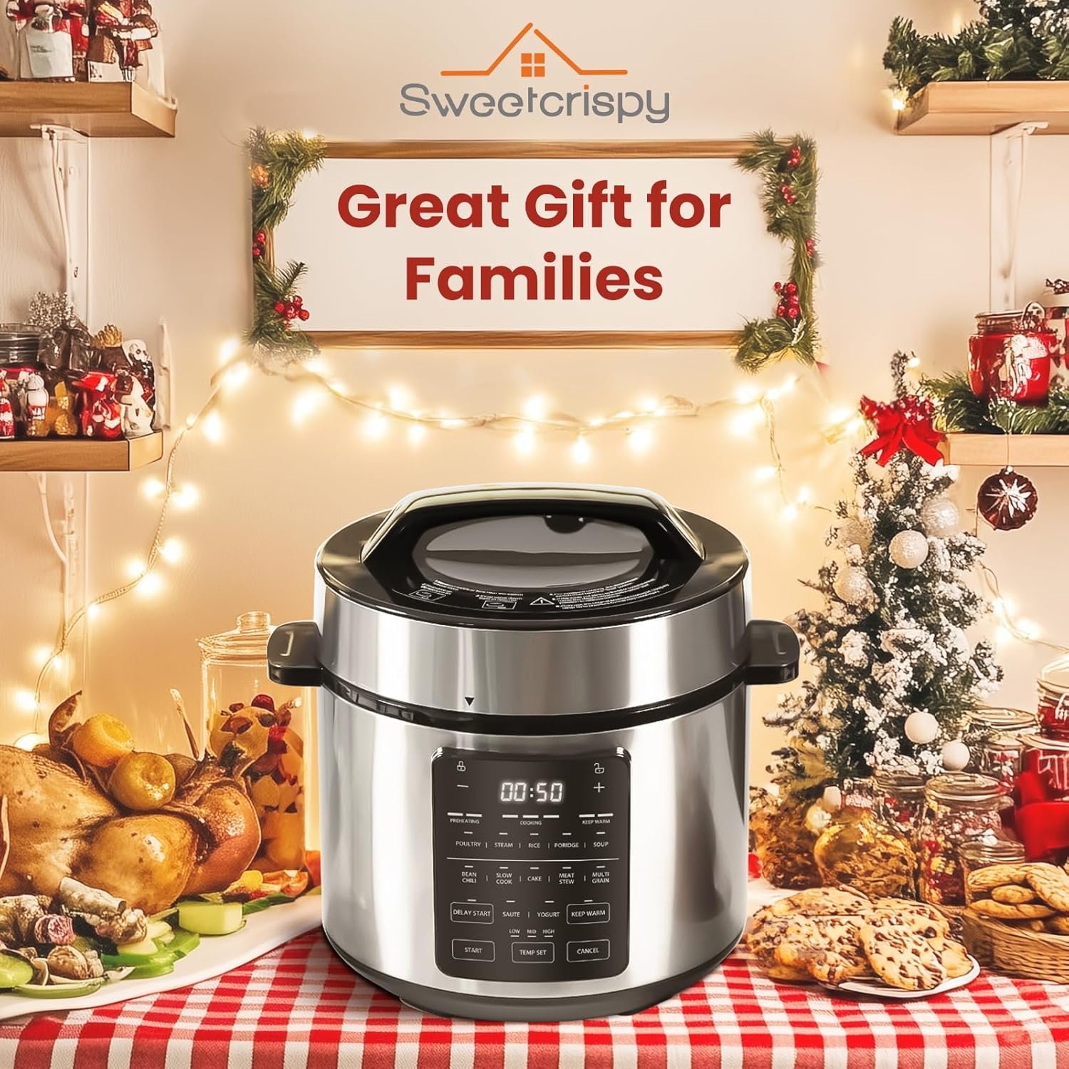 Safe and Reliable: Safer than a traditional gas pressure cooker, Sweetcrispy electric cooker ensures your kitchen remains a secure environment while providing quick and efficient cooking.