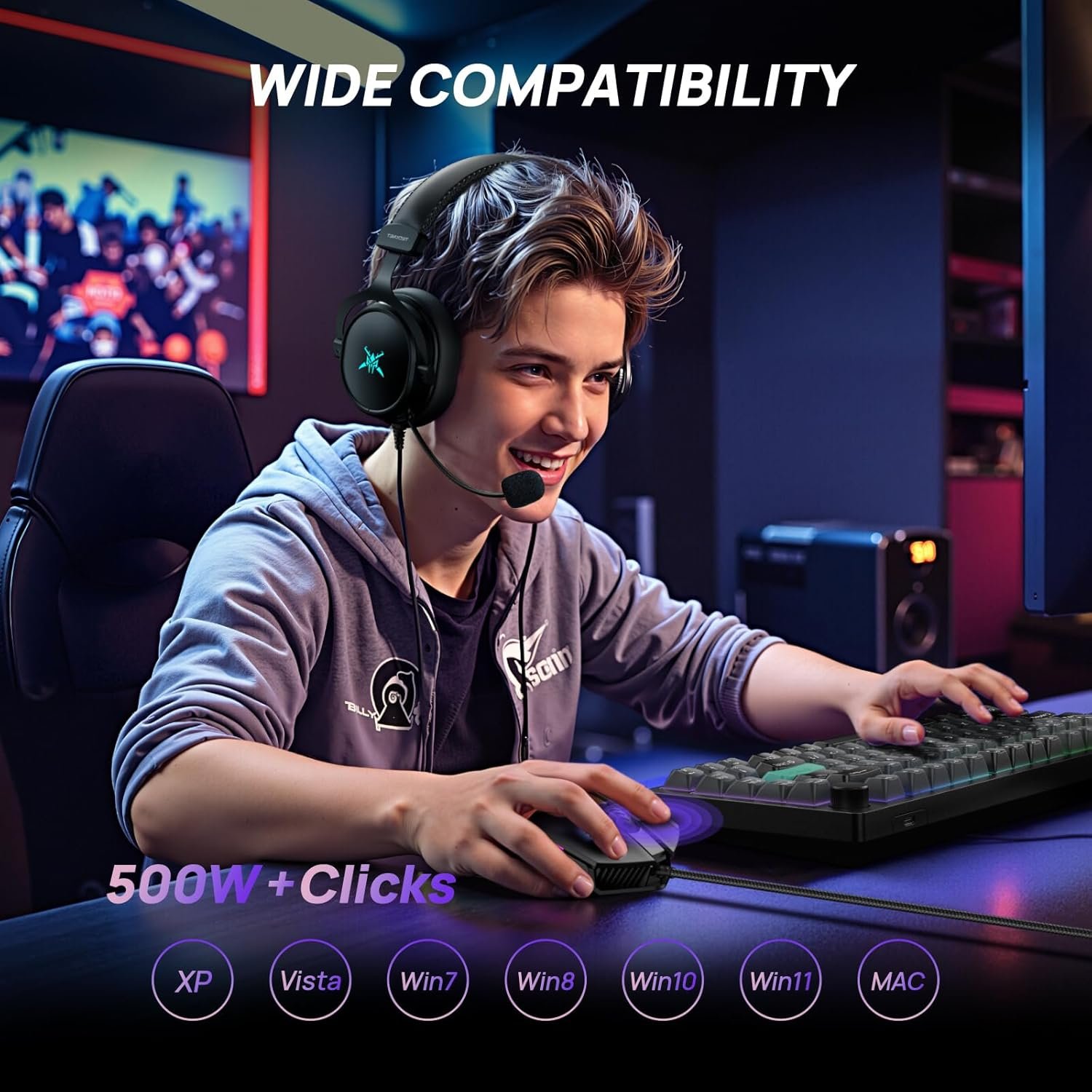 [13 RGB Lighting Modes] Our TECKNET driver offers 13 lighting modes and customizable lighting effects across 16.8 million colors. This wired RGB gaming mouse also features musical dynamic modes (wave/flash/starlight) to add a touch of personality to your gaming setup and immerse you in your overall gaming experience