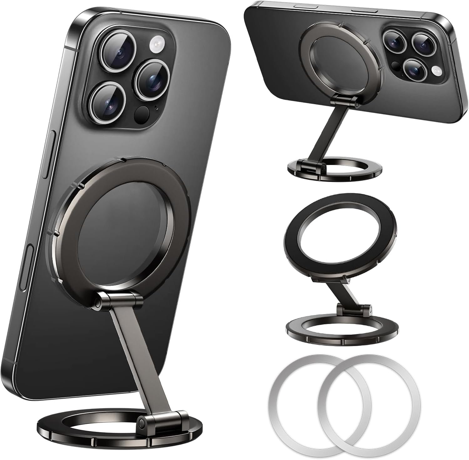 【Effortless Universal Fit】 This magnetic phone stand snaps seamlessly onto iPhone 12–17 series. A metal ring is included for earlier iPhones (pre-12), Samsung, Google, and other Android devices—ensuring broad compatibility. Just snap your phone on with powerful built-in magnets—quick, secure, and effortless every time.