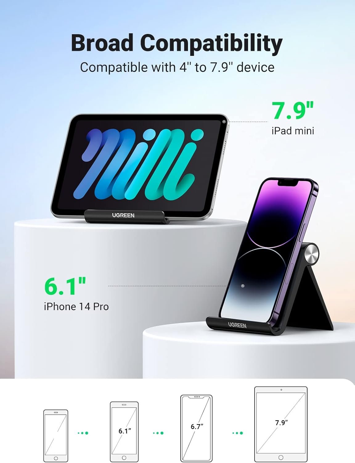 Broad Compatibility: The universal desk phone holder fits 4 to 7.9 inches smartphones, cellphones, small tablets, and e-readers