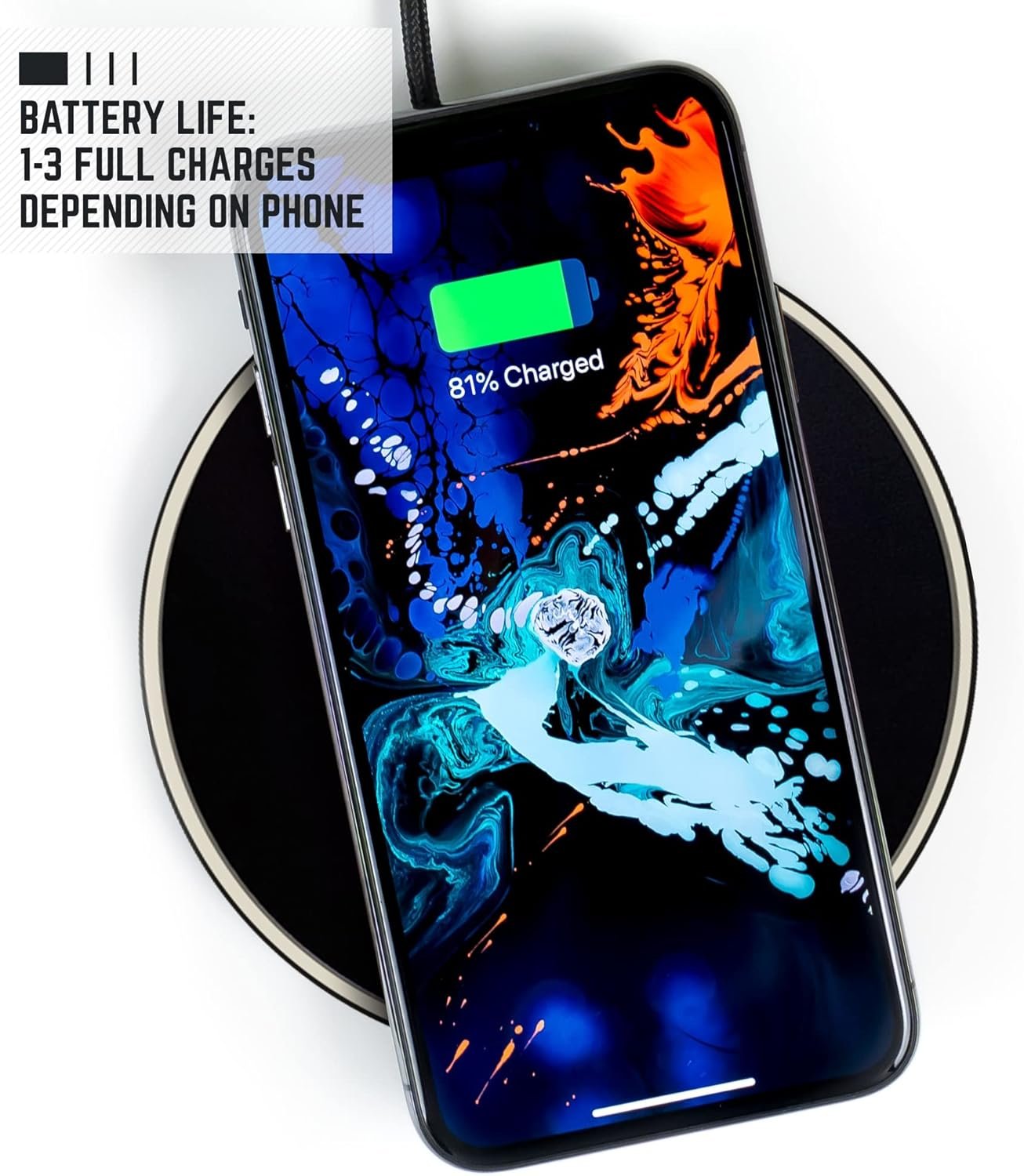 Licensed Functional Collectible Qi Wireless Charging Built-In Power bank lets you charge on the go! LED Illuminated Logo with ON/OFF button Charge wirelessly and wired at the same time! Works for iPhone 8 & up, Samsung and other phones that support Qi Charges through most lightweight cases