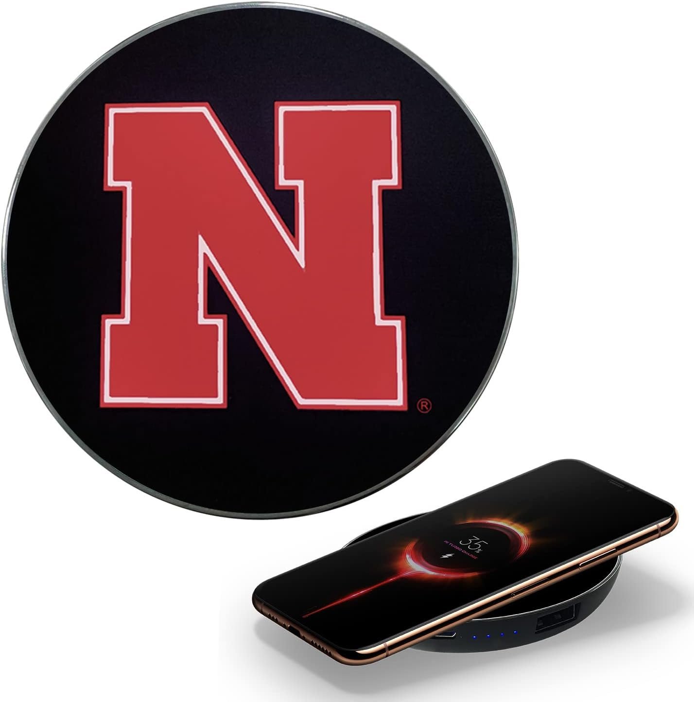 University of Nebraska Wireless Charger with Illuminated Cornhuskers Logo & Built-in Power Bank for Wired and Wireless Charging. 100% Portable Wireless Phone Charger, NCAA Gifts