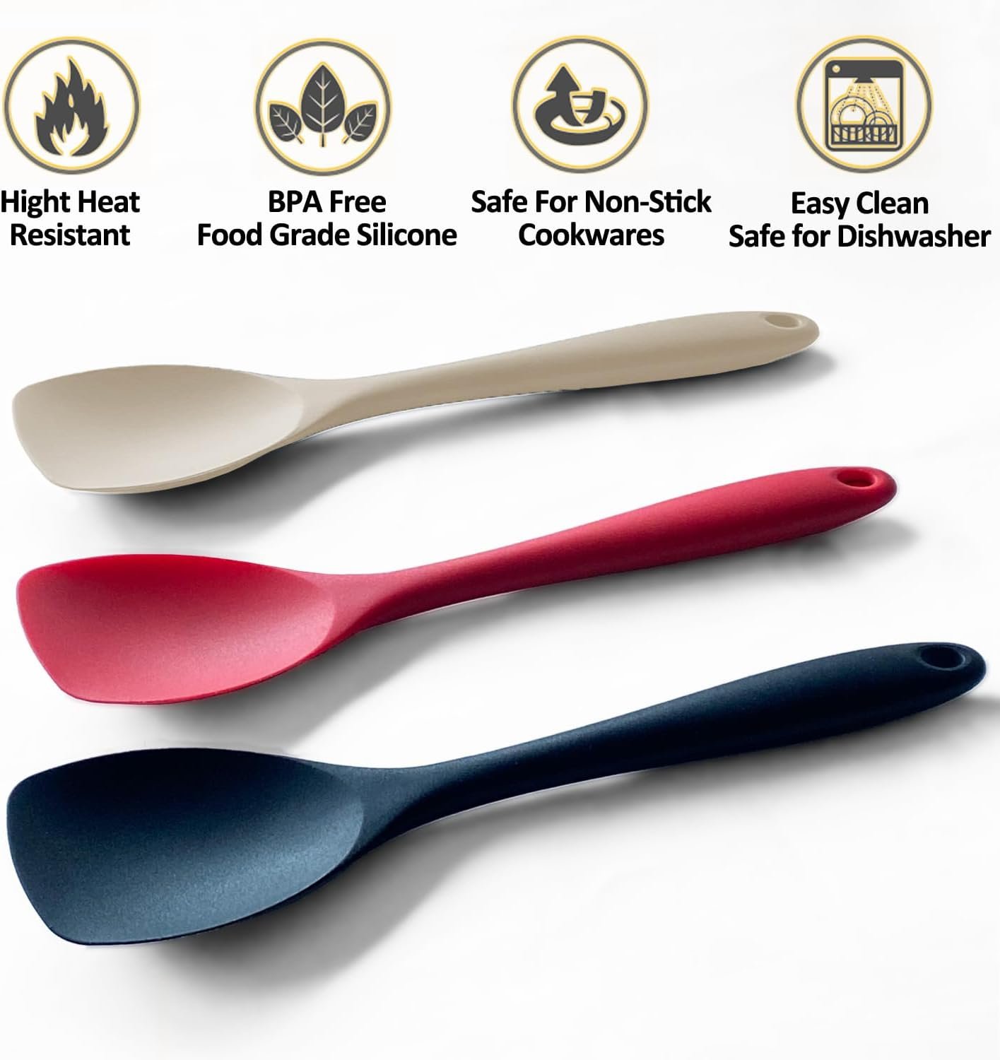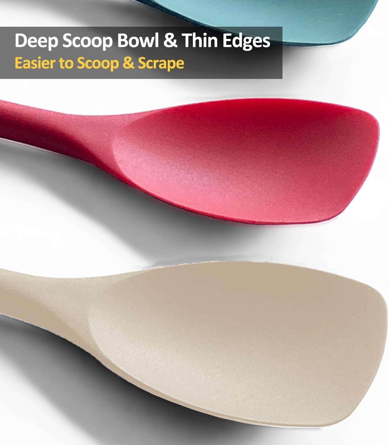 HEAT-RESISTANT Safe Silicone : Our spoonula spatulas are made of food grade silicone, BPA free, won’t discolor, warp, or melt, perfect for use with hot foods , is the best spatulas for for nonstick cookware.