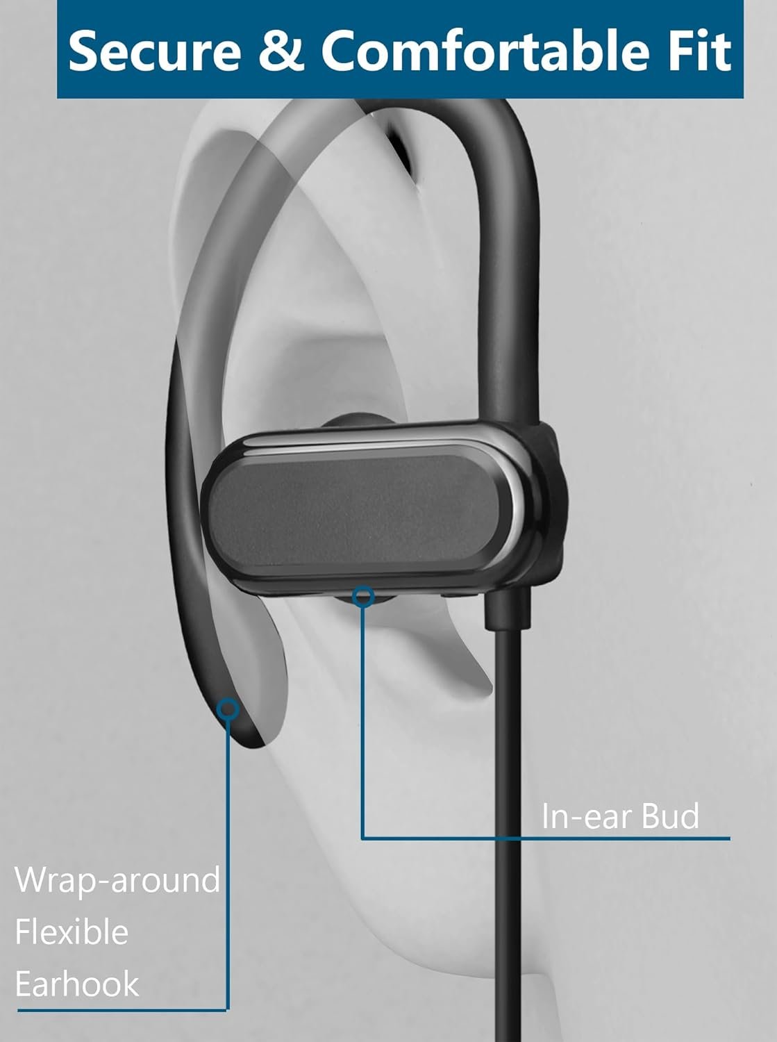 The classical ear hooks wrap around your ears, ensuring sung and comfortable fit.