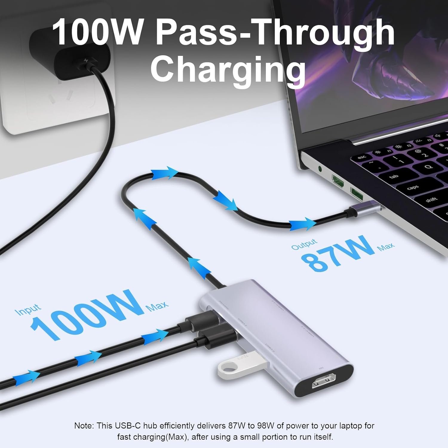 4K HDMI & 100W Charging Combo: Enjoy sharp 4K UHD video at 60Hz on an external monitor. The separate PD input port supports up to 100W passthrough charging to keep your laptop powered during use