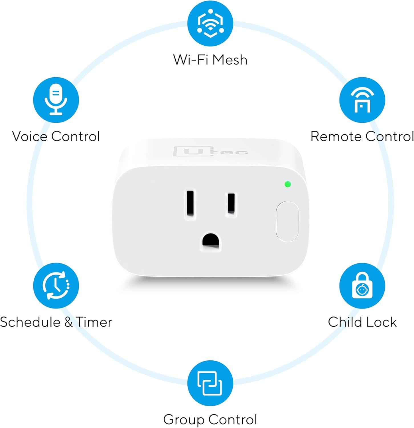 UTEC Smart Plug, Wi-Fi Mesh Outlet, 15A Ultra Efficient Smart Plug Compatible with Alexa, Google Home & IFTTT, No Hub Required, 2.4GHz Wi-Fi Only, Remote Control, ETL Certified, 2 Pack