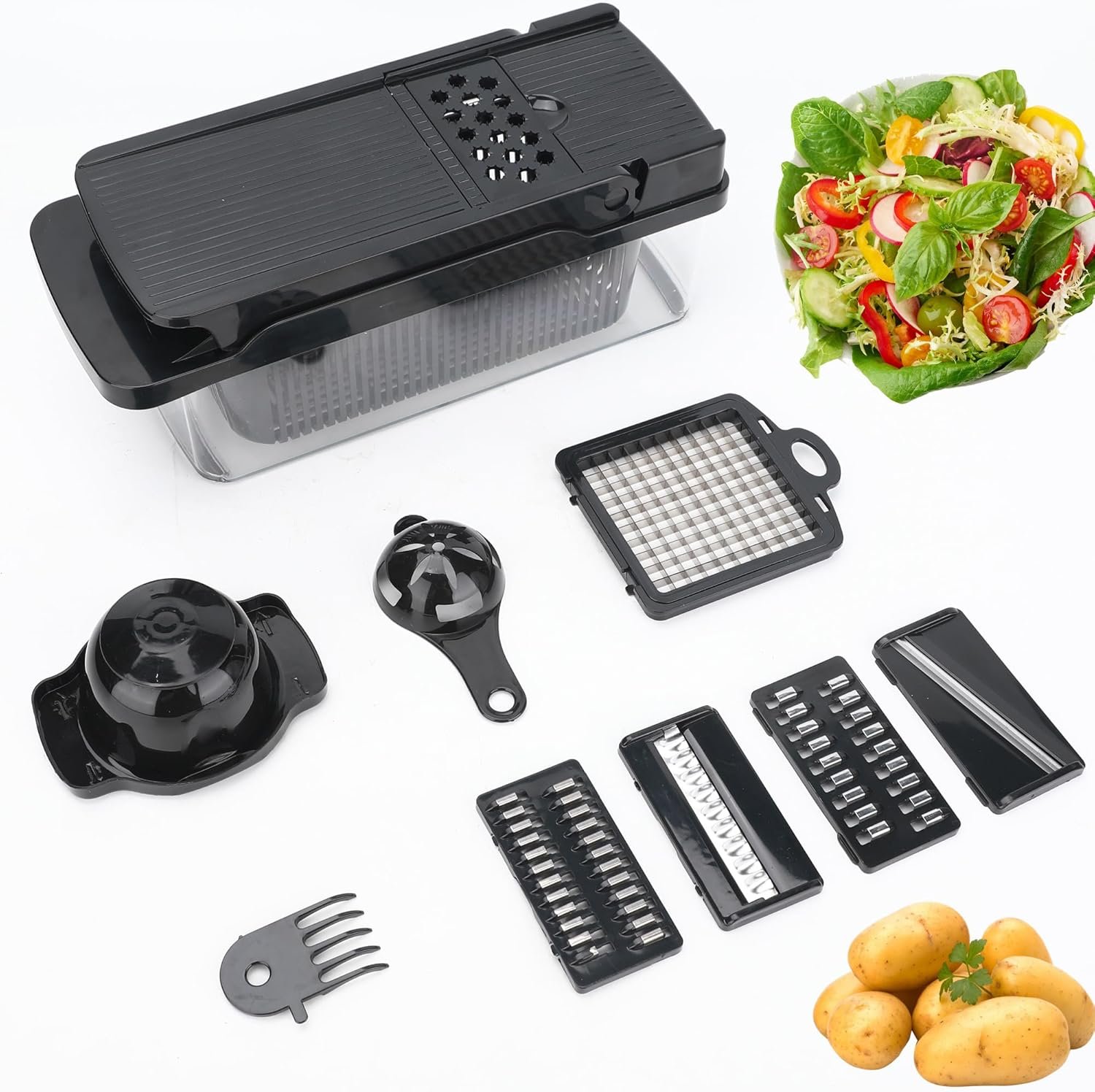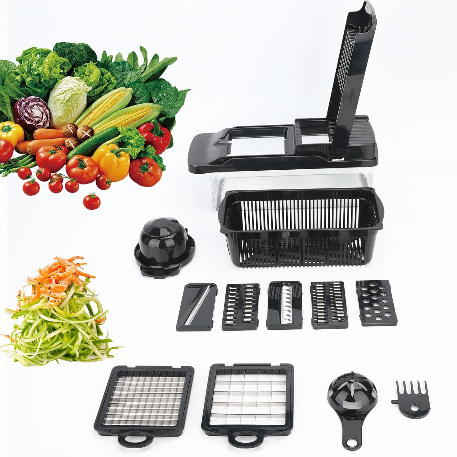 Vegetable Chopper 14 in 1 with Stainless Steel Blades – Multifunctional Onion Chopper, Mandoline Slicer, Food Dicer, Kitchen Cutter Set and must have Kitchen appliances and tools