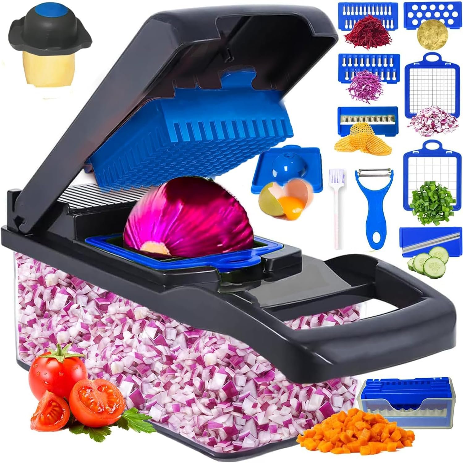 Vegetable Chopper, 16 in 1 Professional Mandoline Slicer for Kitchen, Multifunctional Food Chopper Cutter for Onion, Potato, Tomato, Veggie with 8 blades and With Container