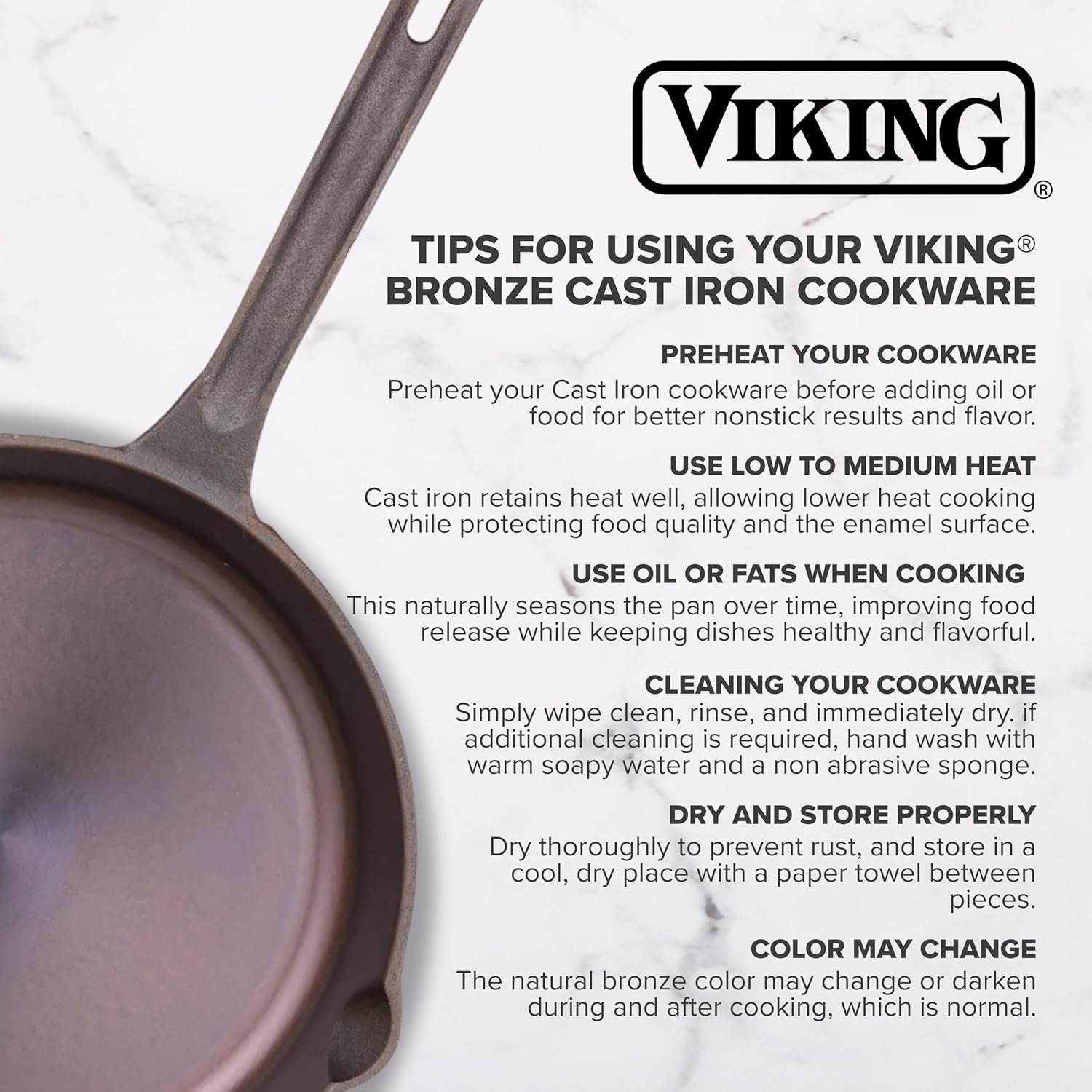 Viking Nonstick Frying Pan, 12 Inch Bronze Cast Iron Induction Cookware, Made without PFAS, Even Heat Distribution, Oven Safe to 500F