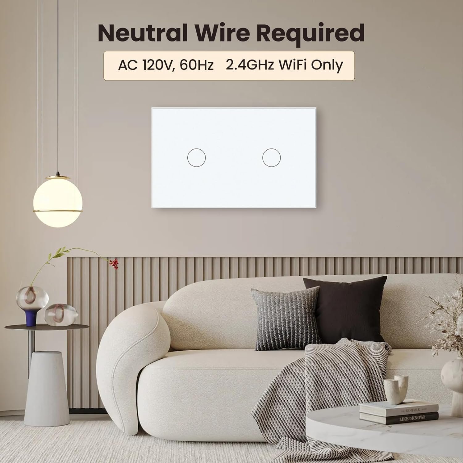 110–220V, neutral wire required: Designed for 110–220V, 50/60Hz home wiring with a neutral wire required. Connects to 2.4GHz WiFi only (5GHz and Zigbee networks are not supported), making it easy to pair with most home routers and Tuya/Smart Life