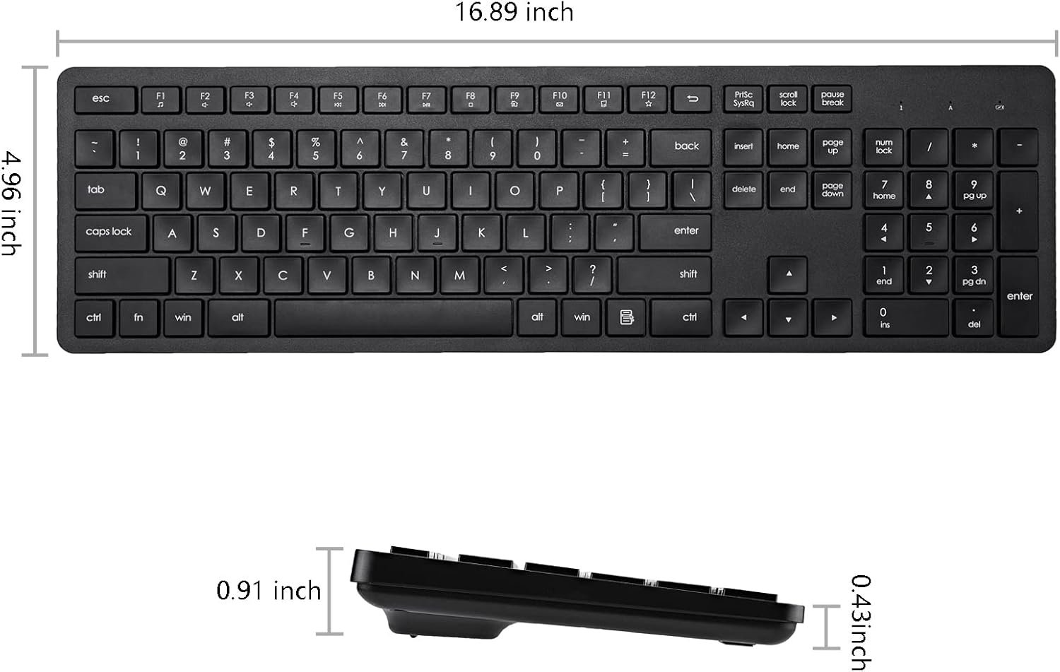 Full Sized Keyboard: The US QWERTY keyboard features a tilt angle for the great typing position, which provides you with a comfortable and accurate typing experience, prevents wrist fatigue. Quiet clicks allow you to focus on your work or play without disturbing others