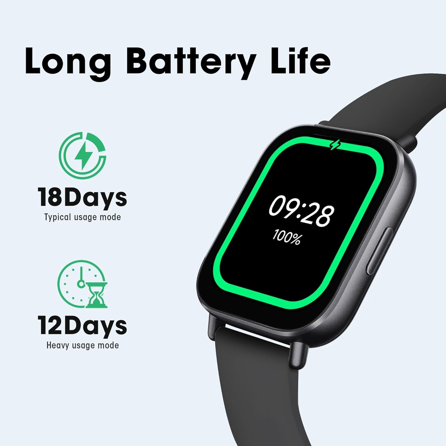 【5ATM Waterproof & Long Battery】5ATM waterproof (ISO 22810:2010) for rain and handwashing. The 470mAh battery lasts up to 18 days in typical usage.