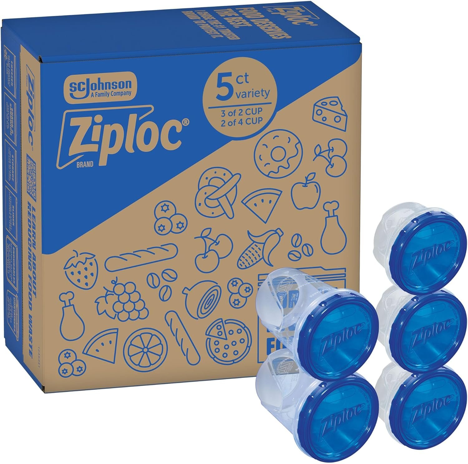 Ziploc Brand Twist n Loc Food Storage Containers, Leak Resistant Design, Small and Medium Round, Variety Pack, 5 count