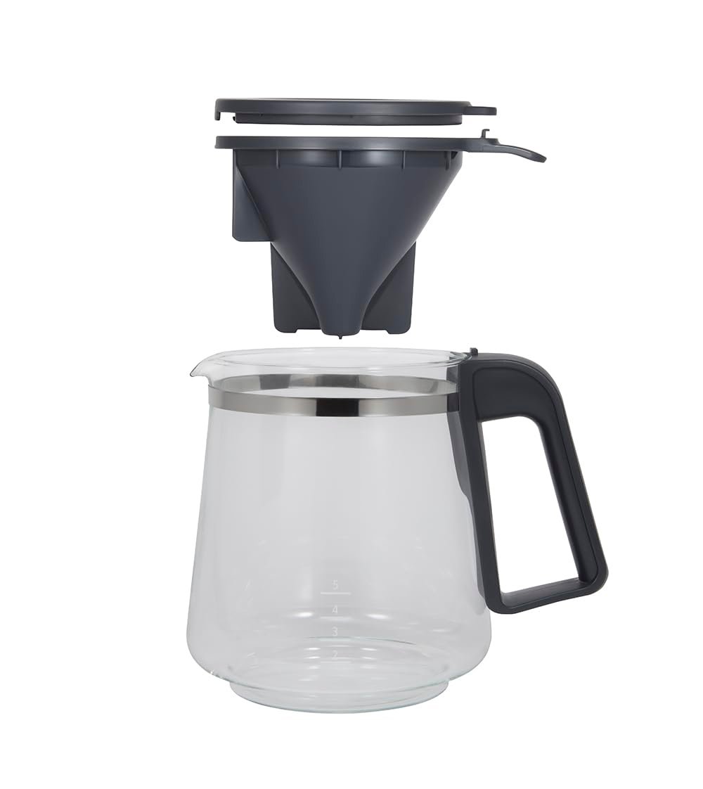 The ZUTTO® Coffee Maker features a removable water tank and water filter that lasts up to 2 years under normal use for clean operation. It brews up to 5 cups of coffee and features automatic keep warm. Iced coffee water measure lines adjust the water-to-coffee ratio for a stronger coffee that doesn’t taste watered down when chilled with ice. Glass carafe is ergonomic with an easy-grip handle and knuckle guard for extra protection. Compact design and ideal for small spaces. Coffee maker is free of PFAS (including PTFE and PFOA) and BPA on all areas that come into contact with food or beverages.